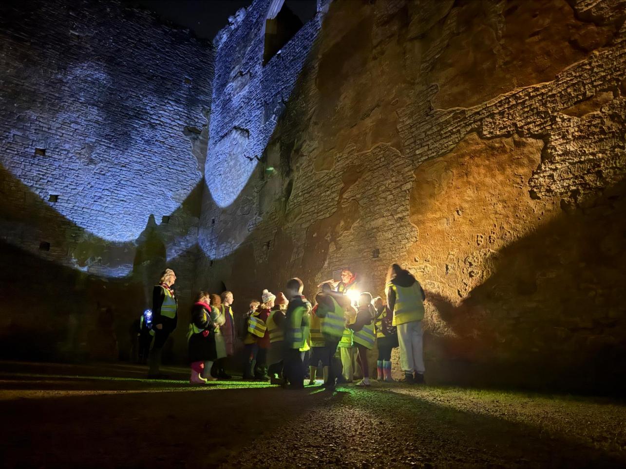 Walking through the ruins, we firstly took a stroll in the fields at the back of the hall. During the stroll we stopped to talk about what we would do if we came across the scene of an accident, why it is important to tell an adult when an accident happens and how to treat minor cuts, scratches and grazes.